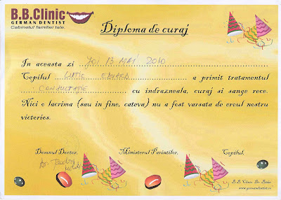 Eu cred ca sunt mai curajosi copii la dentist decat adultii…eu stiu pe cineva care era la limita lesinului cand ajungea pe "scaunul de tortura" si avea cam multisori ani…